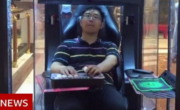 【悲報】中国人夫、妻の買い物中に晒し者スケスケゲーム個室に収納されてしまう
