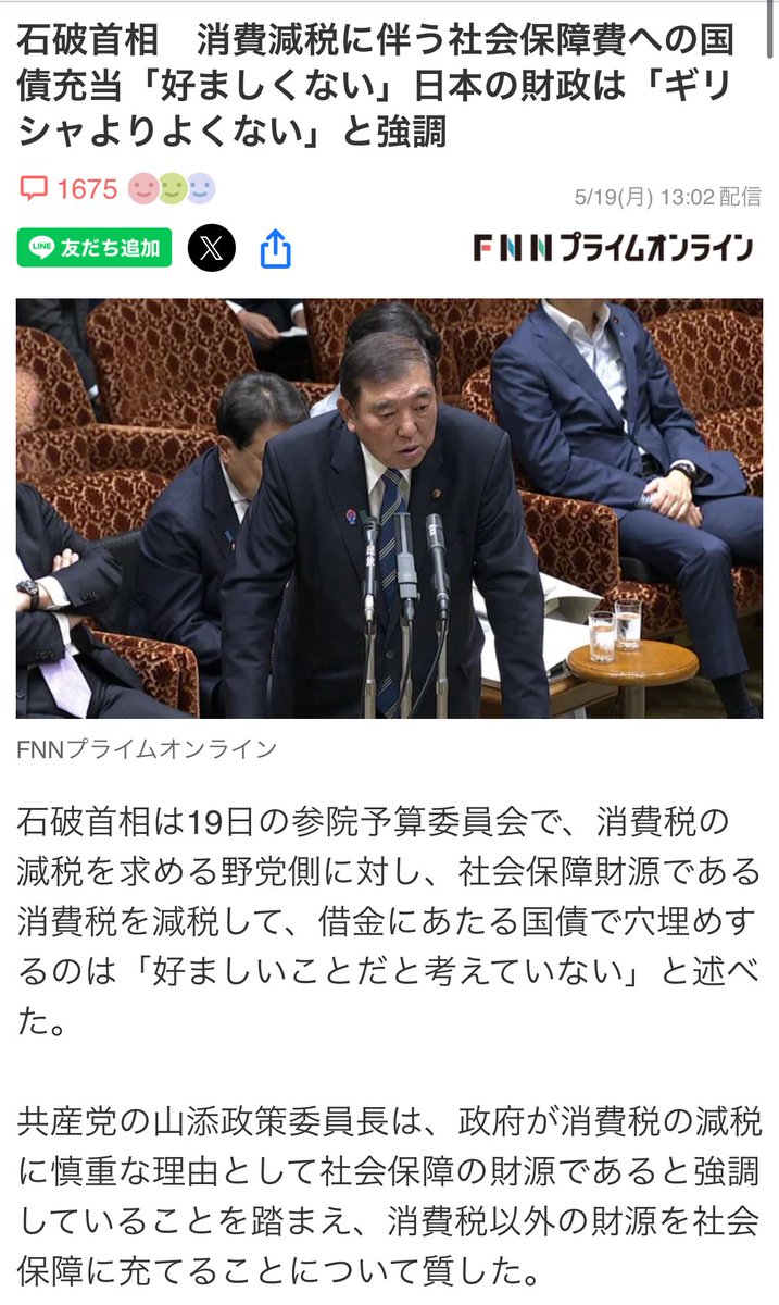 【悲報】石破「残念ながら日本の財政はギリシャより悪いです…」