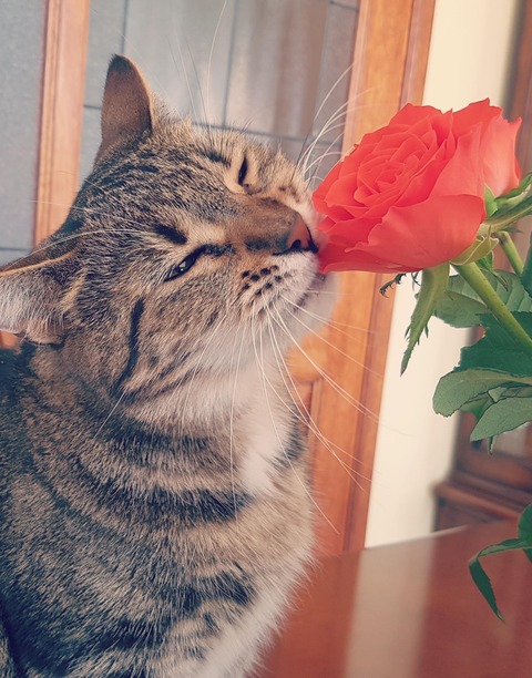 【どうぶつ画像】花とキジトラ、目が光るわんにゃんとびっくりねこ?、ひっつきわんにゃん ほか【再】