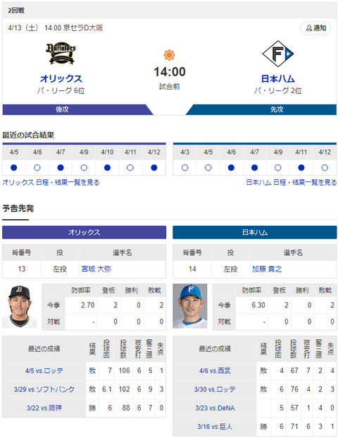 【セ・リーグ】D 2-2 T [4/12] 中日-阪神は延長12回引き分け
