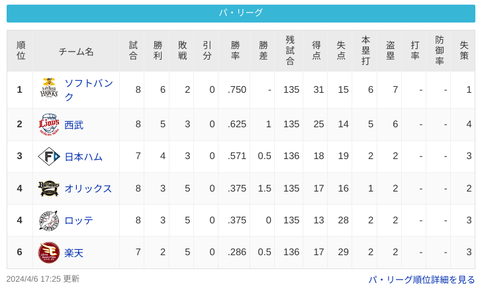 パ・リーグ M 1-9 B [4/6] オリックス ようやく打線目覚めた!今季最多14安打9得点!!