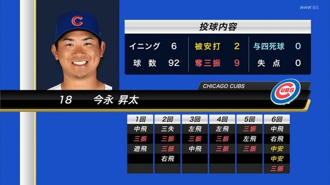 カブス・今永昇太、初登板初勝利!103年ぶり!MLBデビュー戦で9三振0四球