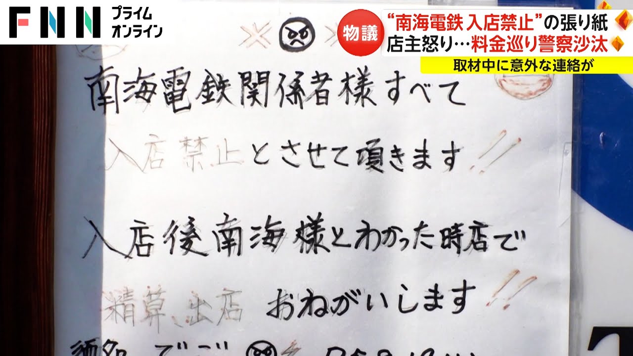 “南海電鉄入店禁止”張り紙 店主怒り「3時間ぐらいどんちゃん騒ぎ」料金めぐり警察沙汰に