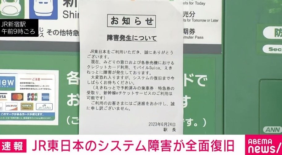 モバイルSuicaサーバーダウン、原因は電源工事でブレーカー「切」
