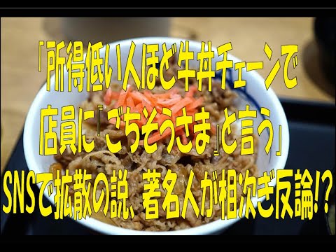 『低所得者=牛丼説』著名人が反論、メンタリストDaiGoも参戦!