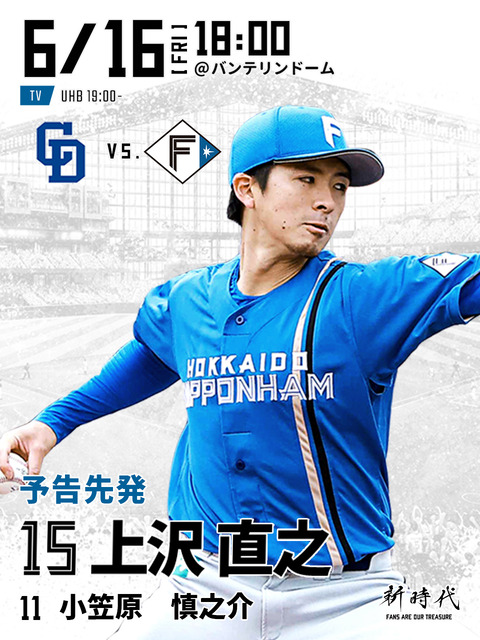 【vs.中日】日ハム上沢、細川にソロホームランを浴びて先制を許す