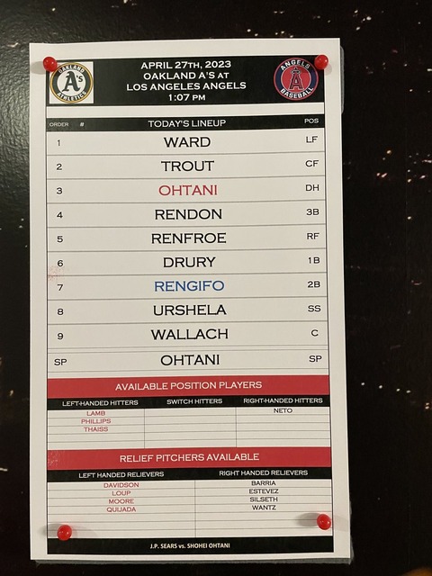 大谷先発試合のエンゼルススタメン