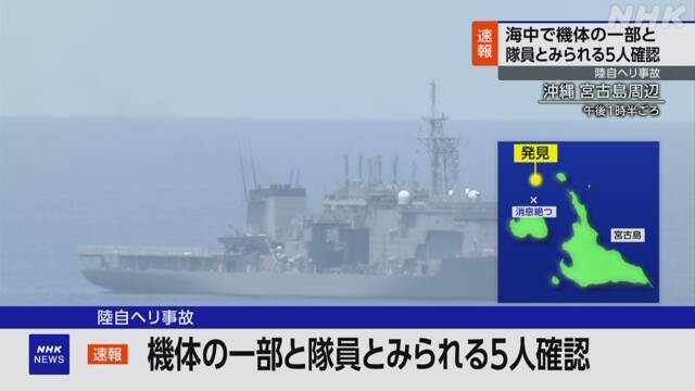 陸自ヘリ事故 機体の一部と隊員5人を確認、救助を急ぐ