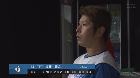 【vs.西武】日ハム加藤貴之、7回まで70球で無失点 90球完封ペース!