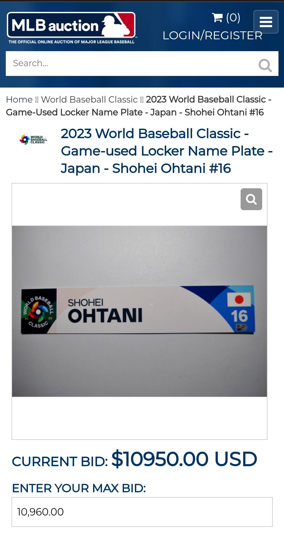 大谷翔平さんのWBCロッカーのネームプレート、145万円超え
