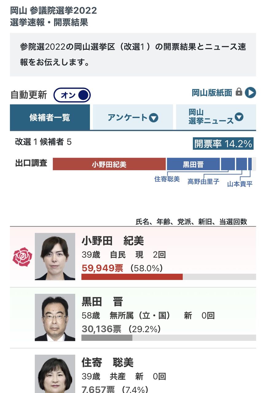 小野田紀美候補が圧勝 『公明票断ったら獲得票が激増する法則』発動! 参院選岡山