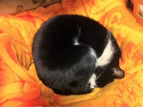 黒いキジトラが香箱を組む姿って○○に似てるなー、と○○の時期に毎年思う。【再】