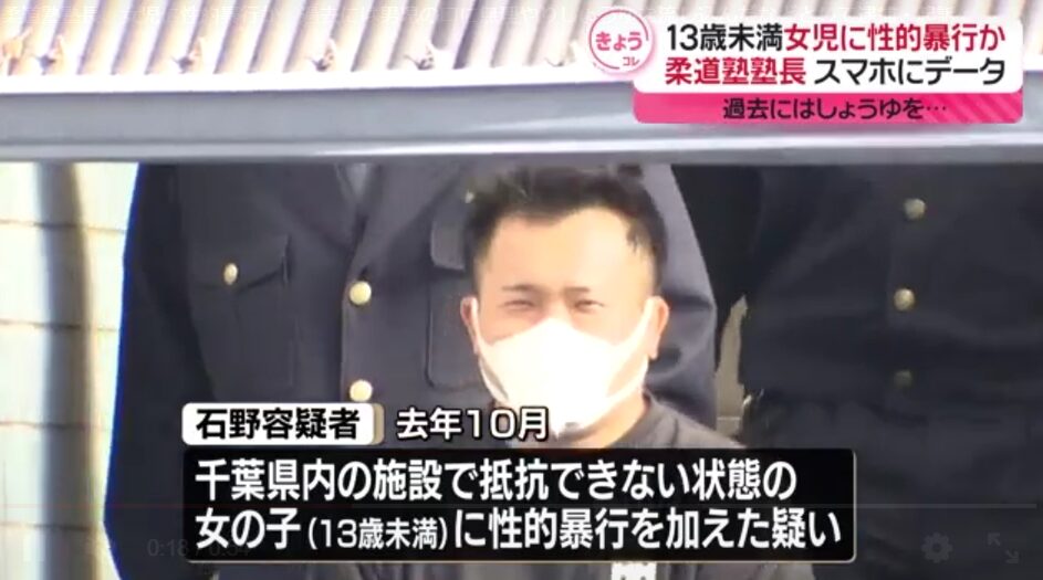 【千葉】男児に醤油飲ませ起訴された柔道塾の塾長、女児に性的暴行疑い…設備工の石野勇太被告(32)を再逮捕!