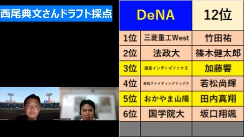 【ドラフト】西尾典文氏「DeNA12位」60点の低評価に期待大!?