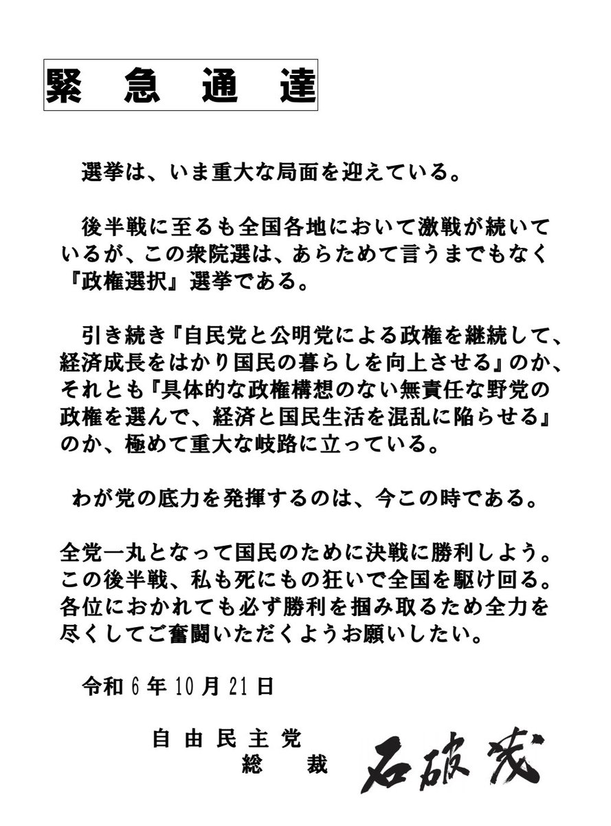 【悪夢の自民党政権にアプデ】石破茂首相が緊急通達 衆院選で切迫感