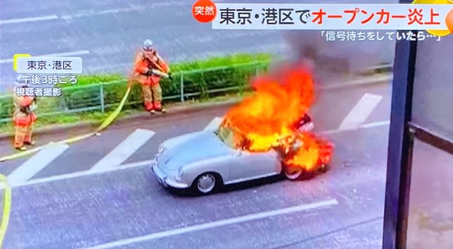 【港区】オープンカーが炎上 けが人は無し