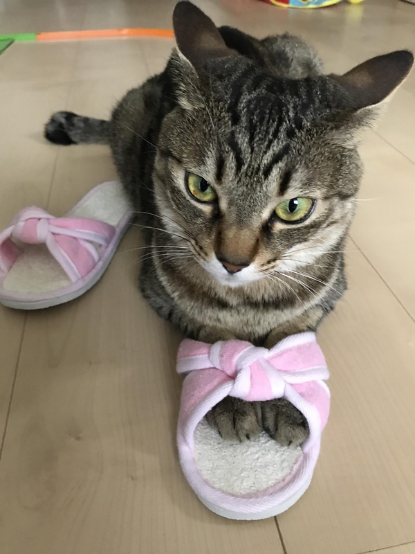 ねこ様がこのスリッパは渡さないと言っておられるようです。【再】