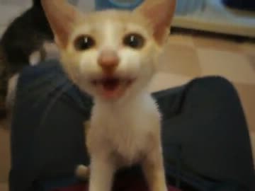 今いっしょにいるメスねこは叱られるとプイっと2階の部屋へ行ってひたすら無意味に鳴く。通常の3倍も大きく長く。【再】
