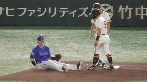 オースティン、ハイジャンプで巨人浅野を飛び越え!接触を上手く避ける