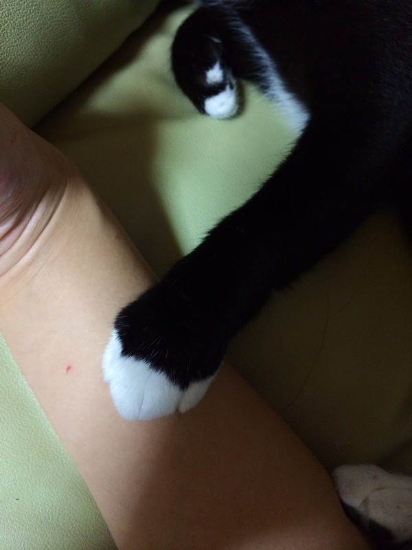 出かけようとすると 「いかないで~」と前足で抑え込んだり握ったりしてなでなでを強要してくる。【再】