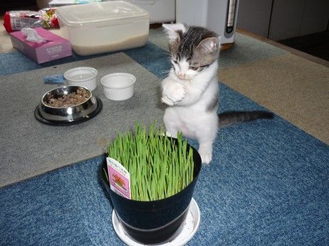 【画像】 猫草の前で悩む子猫【再】