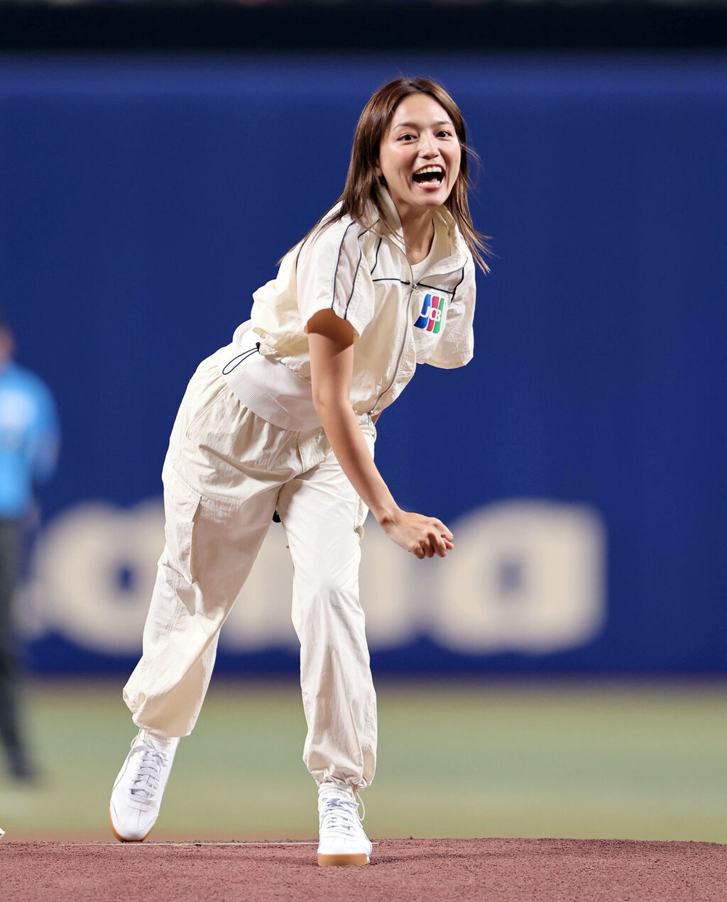 国民的女優・川口春奈がサプライズで始球式に登場 バンテリンドームがどよめく