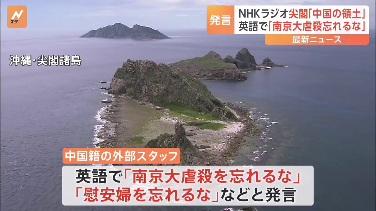 【ラジオ】NHK「尖閣は中国の領土」発言の中国籍スタッフ、英語で「慰安婦を忘れるな」「南京大虐殺を忘れるな」発言