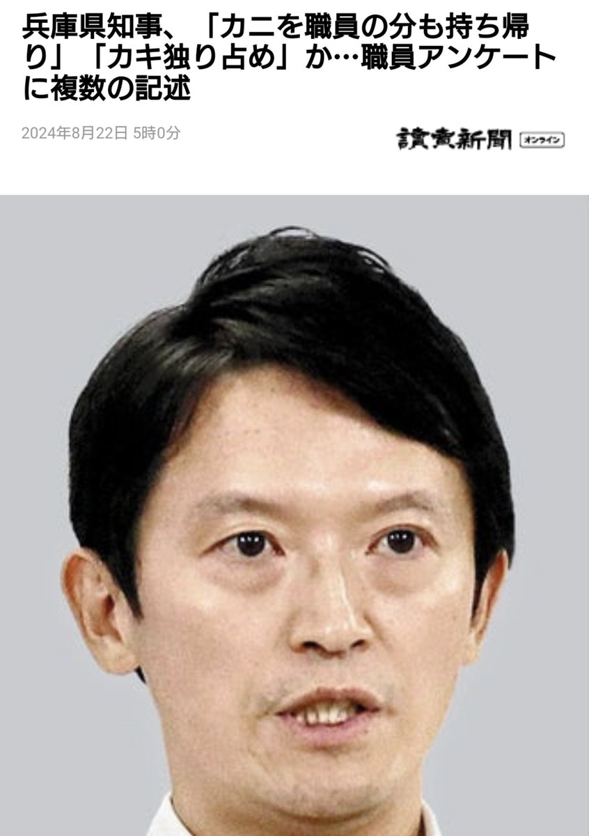 【疑惑】斎藤知事、「カニを職員の分も持ち帰り」「カキ独り占め」か…旅費規程を超える高級旅館宿泊も…
