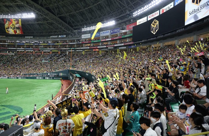 阪神 ラッキー7で左翼席の虎党からジェット風船が飛ぶ 久しぶりの光景 みずほペイペイドームでは新仕様の風船が使用可