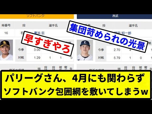 パリーグさん、4月にも関わらずソフトバンク包囲網を敷いてしまうww